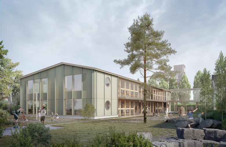 Visualisierungen Wettbewerb Neubau Kindergarten und Sanierung Schulhaus Boge