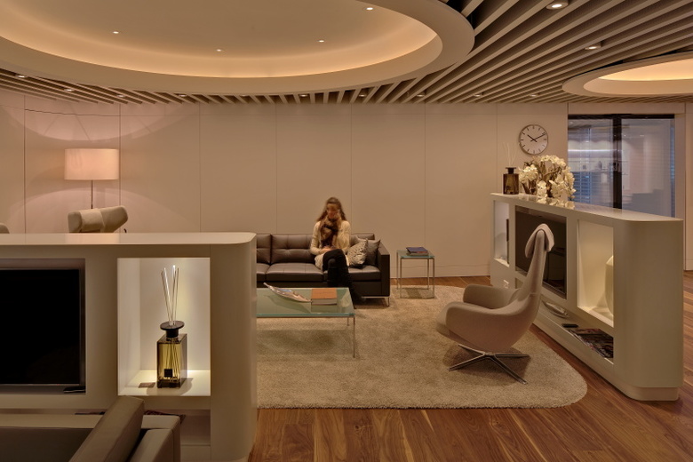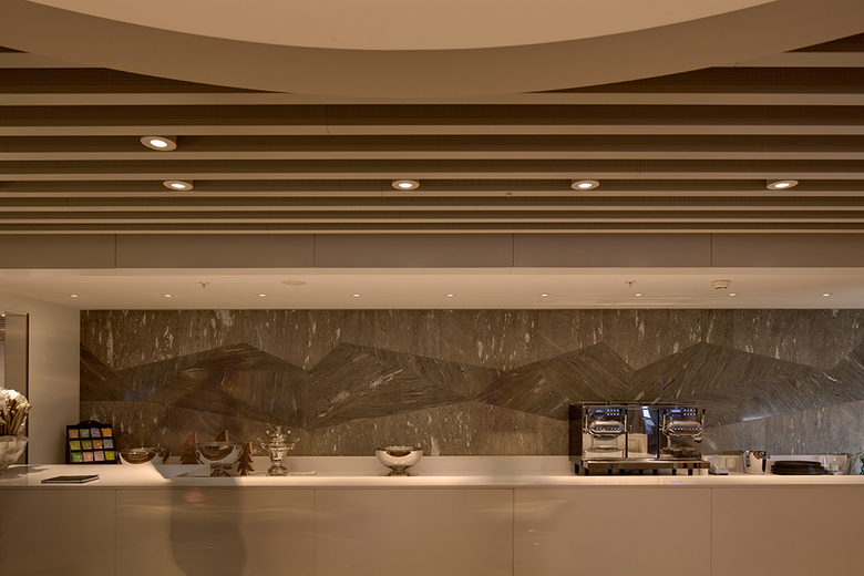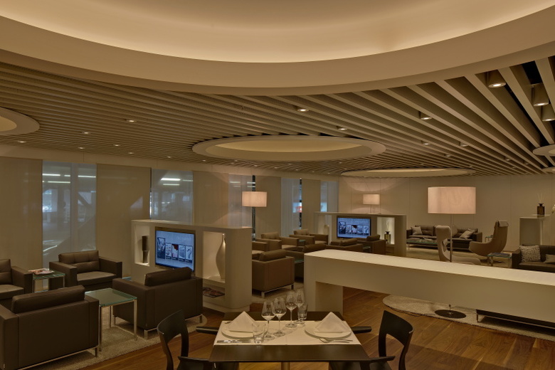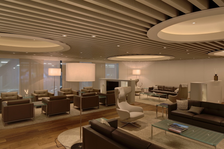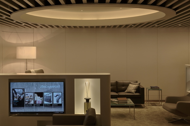 Repräsentativer Lounge mit Gastro- und Konferenzbereich in LED Technologie.