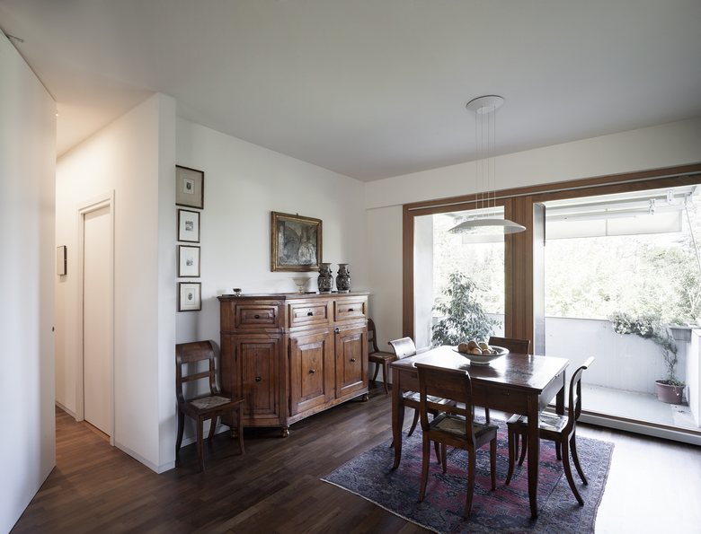 Through the refurbishment of this apartment in Treviso, we wanted to give the space a new spatial definition and a silent shape that could act as a background for the daily life so that the new intervention does not interfere with the furniture and objects that represent the history and the memories of the owner.