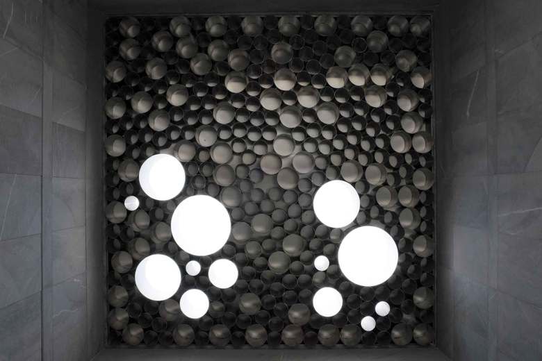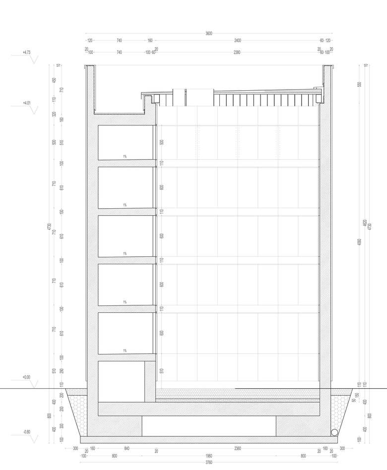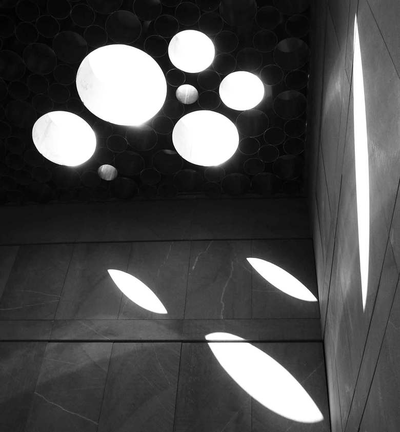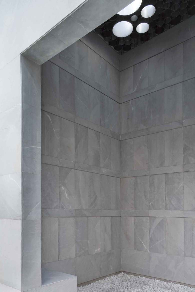 EXiT: “That’s why the stone will have a silent facing so it will be difficult to identify the burial niches. That’s why the wall design will look uniform from the inside to the outside and thus will mitigate the passage through the two ambiances. The roof will be developed by joining inox tubes that would be soldered together; this will produce a continuum of movement of lights and shadows leading your sight upwards. A few of these tubes will not be covered and from them light, air, rain will pass allowing you to see the sky.”
