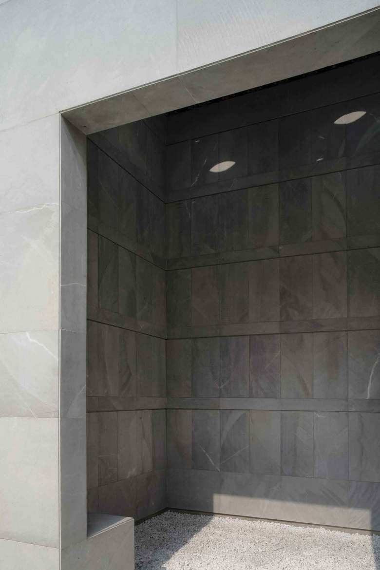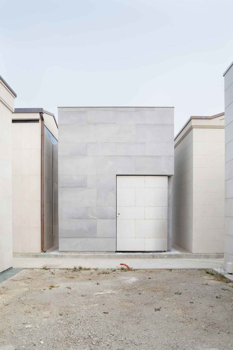 EXiT: “That’s why we thought about developing a comfortable space where you can sit and stay in contact with the atmospheric agents but be protected by them. The roof, with its passage of soft and changing light would enable you to appreciate the passing of time, and in case of rain, the water would drain through some holes inside the chapel. The floor, made of white gravel, would drain the water leaving the floor dry and when the silence becomes too oppressive, with the slight movement of gravel by foot, you will be accompanied in your thoughts by a slight sound. The door would not be closed hermetically but would allow air and light to pass so as to realize a controlled microclimate with a changing light according to the hour of the day.