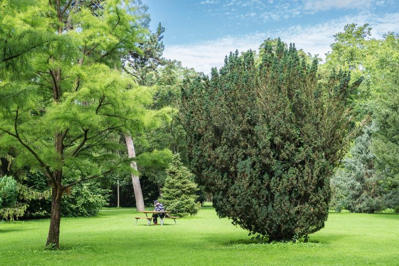 Wo nötig, ergänzte es: beispielsweise den Rundweg, der heute alle Teilräume erschliesst, wo früher vieles unzugänglich war. Die äussere Fassung der offenen Parkmitte, der Baumrahmen, ist ein Arboretum, das ergänzt und nach botanischen Familien gruppiert wurde. Den Grundstein dafür hatte die Stadtgärtnerei gelegt, die hier über Jahrzehnte überzählige Laubbaumraritäten aus anderen Anlagen eingesetzt hatte.