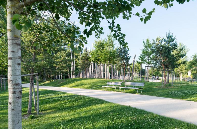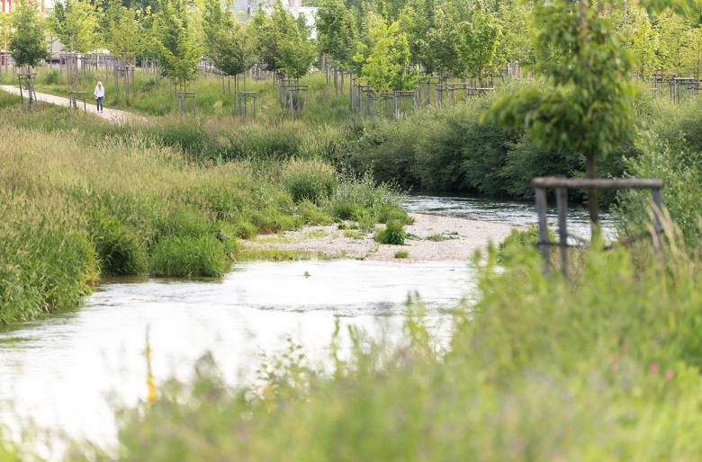 Hochwasserschutz, ökologische Ansprüche und die Nutzerbedürfnisse verknüpft der Entwurf zu einer Erholungsinsel; einer Symbiose zwischen Park und Landschaft.