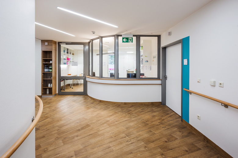 Der vorhandene Gebäudekomplex von 1867 wurde um das neue Bettenhaus erweitert. Der dreigeschossige Neubau grenzt in einem Winkel von 90 Grad an die bereits bestehenden Stationen an. Er besteht aus komfortablen Zweibettzimmern mit insgesamt 54 Pflegebetten.