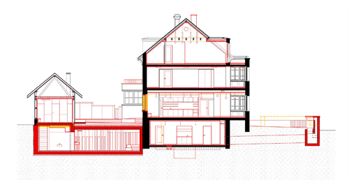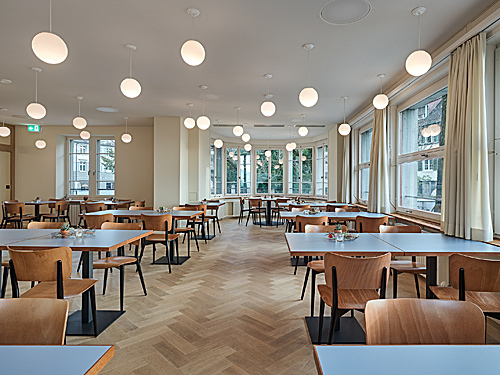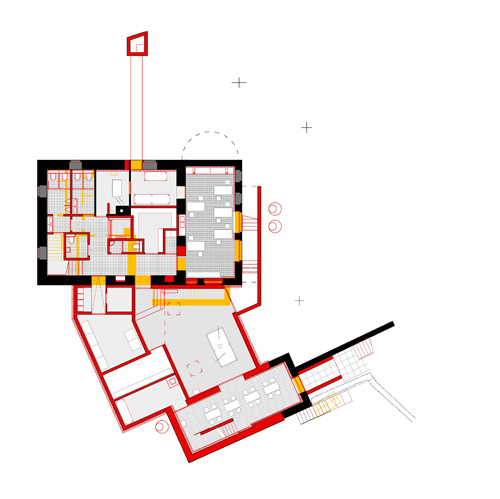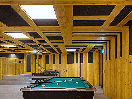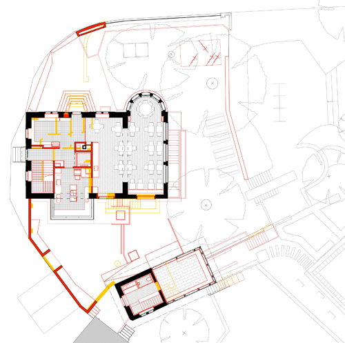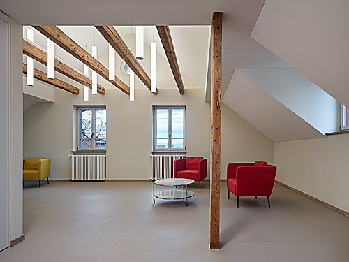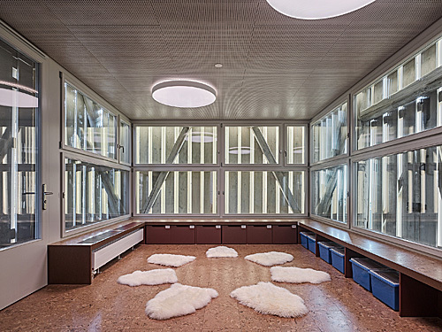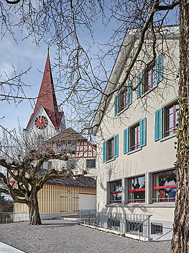 Die Liegenschaft Sonnegg in Höngg bildet zusammen mit der reformierten Kirche und dem Pfarrhaus ein stimmiges Ensemble. Die attraktiven Freiräume sowie die Aussicht ins Limmattal machen aus dieser Anlage einen im Quartier beliebten Treffpunkt. Die bestehenden Bauten, Hauptgebäude und Schopf, gehören zur Kernzone und sind den Vorschriften der Profilerhaltung unterworfen. Sie werden zudem im Rahmen des Umbau- und Erweiterungsprojektes unter Denkmalschutz gestellt. Durch den Eingriff soll das räumliche Angebot erweitert bzw. verbessert werden, und alle Generationsgruppen „niederschwellig“ ansprechen. Im Hauptgebäude wird ein Personenaufzug eingebaut, ein öffentliches Café sowie verschiedene Atelier- und Mehrzweckräume eingerichtet. Der Schopf wird als Kinderhaus ausgebaut. Dazwischen wird unter der Hoffläche ein neuer Jugendkeller als Verbindung beider Bauten eingefügt. Der Entwurf orientiert sich an die Eigenschaften des Bestandes: hybrid bezüglich Bauepochen, Materialien und innenräumlichen Stimmungen, wird das Ganze jedoch als eine Einheit wahrgenommen, die gerade aus dem harmonischen Zusammensein dieser Teile seine Attraktivität schöpft.