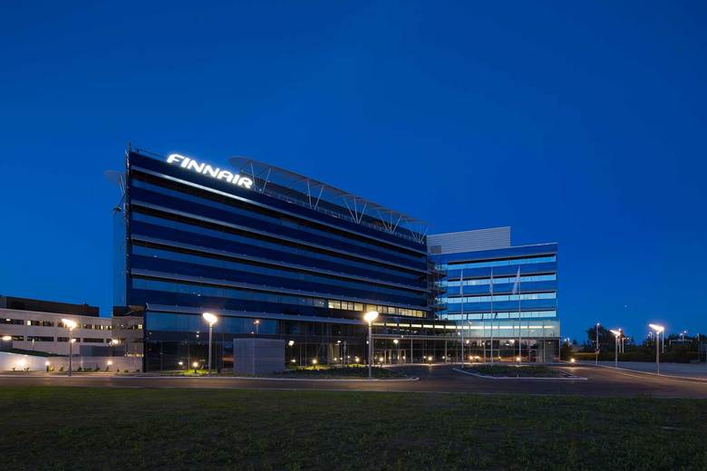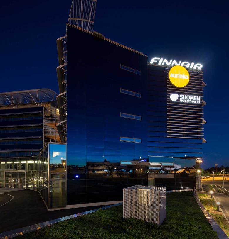 The blue HOTT building near the Helsinki Airport was designed and constructed for the companies of the Finnair Group. The floor plan is flexible: the spaces can be adapted to meet the varying needs of different tenants and organisational changes during the projected hundred-year life cycle of the building. The area of one storey can be divided into as many as six separate office premises. Nearly 900 employees work in the building.