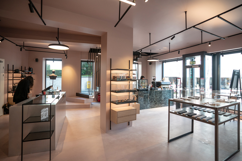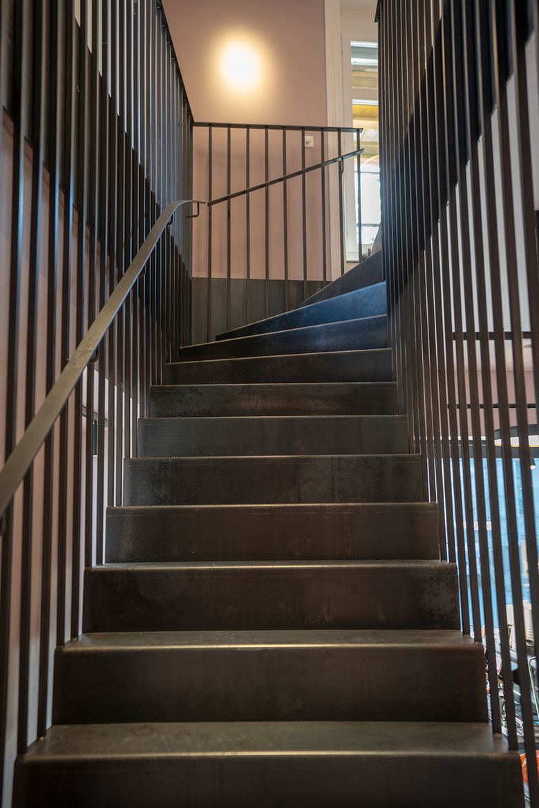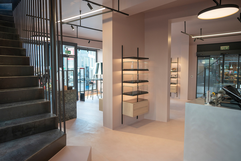 Nicht zu übersehen ist auch die neue abgehängte Metalltreppe, die mit ihrer filigranität und den ersten beiden Stufenblöcken im Boutique Shop einen grossen Akzent setzt.