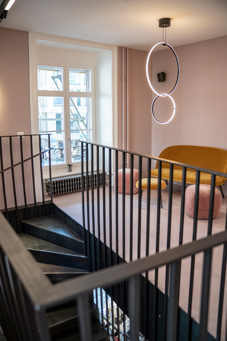 Das neue Giahi Tattoo & Piercing Studio in der ehemaligen Falken Apotheke in mitten der Luzerner Altstadt sorgt für die gewagte Raumfarbe in altrose und den kontrastreichen, leichten, minimalen und linearen Elementen für aufsehen.