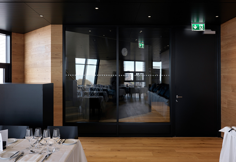 Le bâtiment se distingue par une base octogonale entourée d'un ensemble de tours de cinq étages – avec un léger porte-à-faux en bas qui se recentre en haut. La disposition des différents éléments ressemble ainsi à des pétales. D'apparence plutôt fermée, les tours sont reliées entre elles par des surfaces vitrées généreuses qui offrent une vue spectaculaire. Comme une corolle, la structure du bâtiment sur le côté est fait place à une terrasse qui suit la crête.