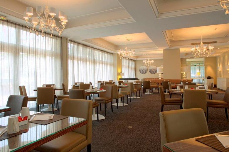 In dem lichtdurchfluteten Restaurant des Hotels nahe Antibes umfängt die Gäste genau diese Atmosphäre. Das Farbkonzept wird bestimmt von warmen, hellen Beige- und Brauntönen, akzentuiert durch Grün und Weiß, insgesamt abgeleitet von den Pinienwäldern, die typisch sind für die Region: Eine Farbkomposition, die dem Auge durch elegante Zurückhaltung schmeichelt und zugleich durch frische Akzente belebt. Großflächige Deckenvouten mit indirektem Licht inszeniert, hellen die Räumlichkeiten zusätzlich auf, die durch eine Glasfassade bereits mit viel Tageslicht geflutet werden. Modern übersetzte matt weiß lackierte Kronleuchter verleihen dem Restaurant außerdem Schick und unaufdringliche Eleganz. Mit diesem Interieur bietet das Restaurant den richtigen Rahmen für ein geselliges Essen unter Freunden, genauso wie für ein elegantes Dinner zu einem besonderen Anlass.