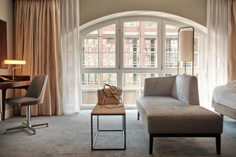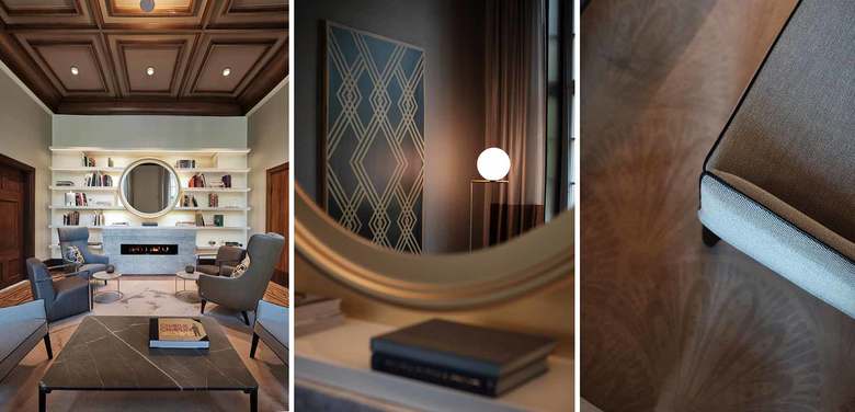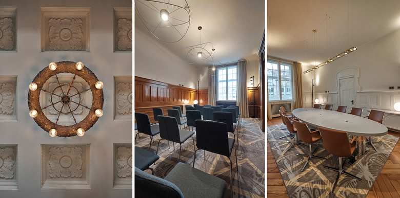 Eine Zeitreise mit unterschiedlichen Stationen: Die denkmalgeschützte Immobilie der ehemaligen Oberfinanzdirektion wurde durch die Umnutzung zum Luxushotel mit einem komplett neuen Fokus wieder wachgeküsst. Die Innenarchitekten entwickelten ein Konzept, das als Hommage an den Lebensstil der 20er Jahre erinnern soll und somit an die Ära der Entstehungszeit. Inspirationen dazu gaben kleine Entdeckungen aus dem Bestand im Art Déco Stil, die dem bestehenden Gebäude von 1910, das ursprünglich nicht als Hotel konzipiert wurde, eine gewisse Leichtigkeit und Eleganz einhauchen. Beim näheren Hinsehen entdeckt man auch weitere Anklänge an die 50er Jahre, die auf die Zeit des letzten größeren Umbaus nach dem Krieg verweisen. Durch die Innenarchitektur werden die verschiedenen Epochen wieder zum Leben erweckt, miteinander verbunden und sensibel in die Neuzeit transportiert.