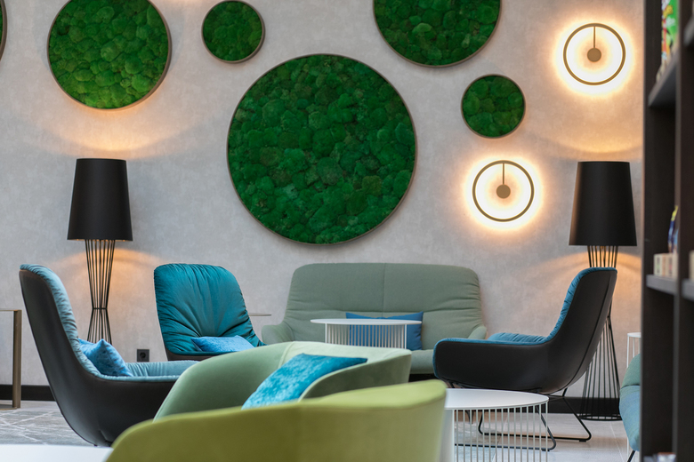Das Hyatt Place in FFM entstand auf dem ehemaligen Rhein-Main Airbase Standort und ist somit direkt am Flughafen gelegen. Der Stützpunkt der US-Luftwaffe hatte einen Baumbestand in ihr Areal integriert, der sich mittlerweile zu einer parkähnlichen Anlage entwickelt hat und nun in das Designkonzept integriert wird. In diesem werden innen und außen miteinander kombiniert – die Natur wird wortwörtlich ins Haus geholt. Lebendige Elemente wie zum Beispiel integriertes Moos in der Lobby strahlen Frische, Gesundheit und Naturverbundenheit aus und beflügeln das Wohlbefinden der Besucher. Gleichzeitig wird der lokale Bezug unterstrichen, indem wohnliche Details wie lokale Kochbücher und ortsverbundene, extra hierfür angefertigte Kunst eingebunden werden.