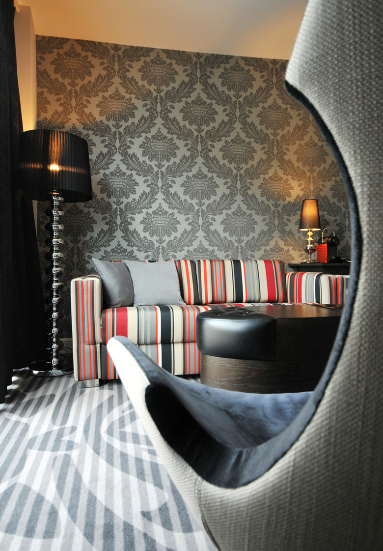 Bei der Renovierung der öffentlichen Bereiche, des Frühstücksraums und der 22 Suiten stand im Mittelpunkt, das ursprüngliche herrschaftlich barocke Ambiente durch raffinierte Details in das neue Design zu integrieren. Dadurch wird der Gast in einem mondänen Ambiente empfangen, das durch stylische Interpretationen nicht überladen wirkt, sondern einen extravaganten und szenigen Charakter eingehaucht bekommen hat.