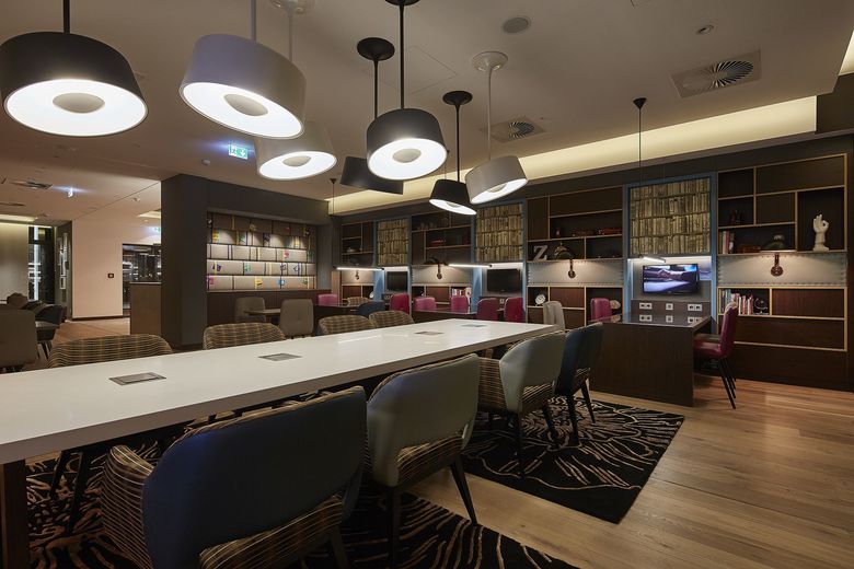 Frisch, originell und mit einer Extraportion leicht-verspielter „Britishness“: Das Premier Inn feiert die Eröffnung seines ersten Hotels in Deutschland im neuen, zentralen Europaviertel. Das kreative Interior Design Konzept symbolisiert typisch britisches Flair auf eine überraschend moderne und humorvolle Weise, und schafft so ein offen gestaltetes Wohlfühlambiente mit viel Liebe zum Detail. Dunkle, warme Farben, die von leuchtenden Türkisnuancen, sonnengelben Akzenten und violetten Highlights belebt werden, untermauern die einladende Atmosphäre. Ausgefallene, ganz unterschiedliche Pendelleuchten setzen schwarmartig die verschiedenen Bereiche gekonnt in Szene.