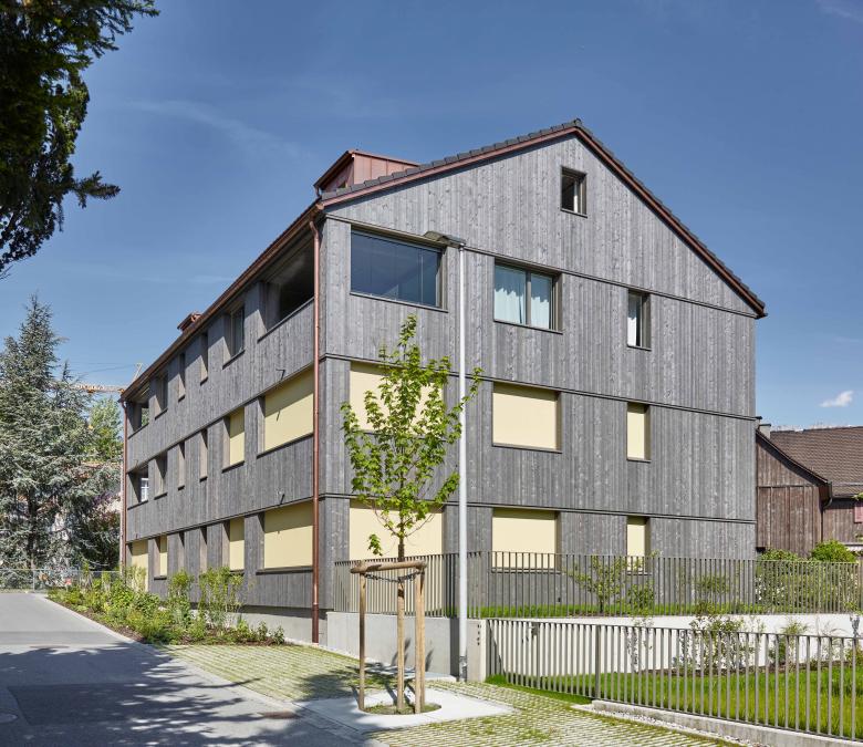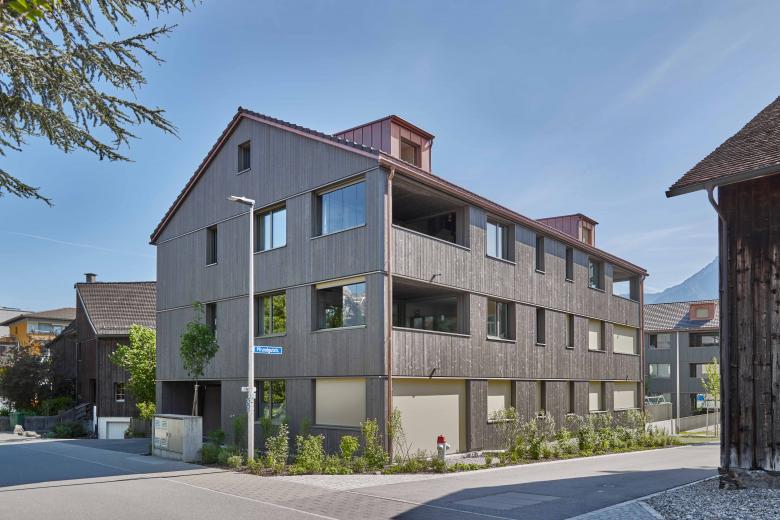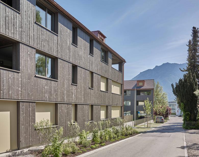 Zwei Mehrfamilienhäuser mit gesamthaft 12 Wohnungen erbaut im Stil des „Beton-Brutalismus“
