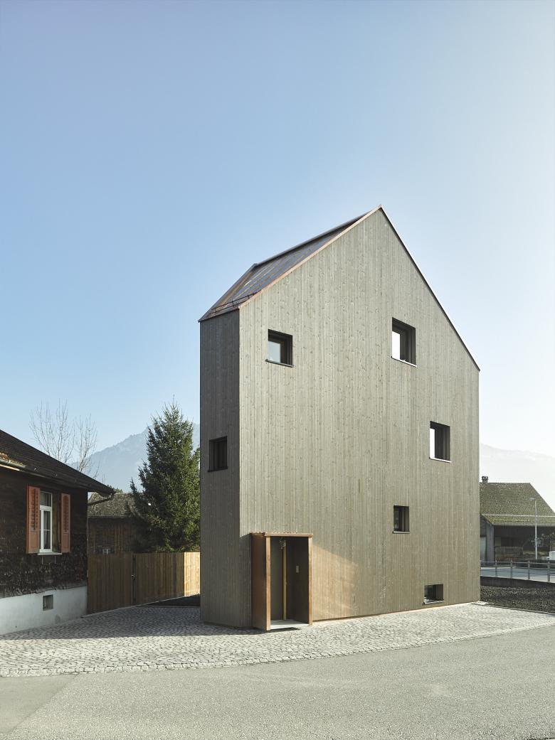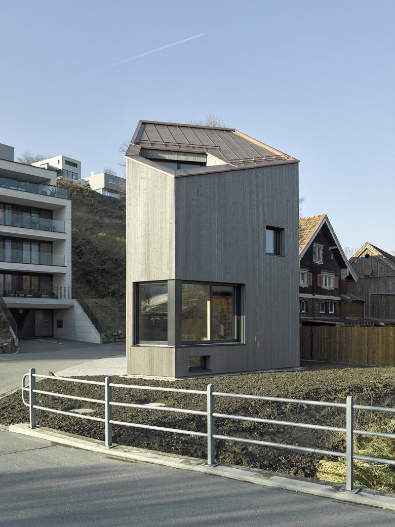 Ein hölzerner Wohnturm auf einer Restparzelle. Nominiert für die Auszeichnung als "Bestes Einfamilienhaus des Jahres 2021".