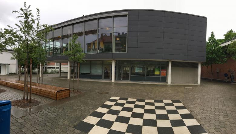 Der Erweiterungsbau mit drei Lernhäusern und Fachräumen ist mit einem Verbindungsbau in den Obergeschossen mit dem bestehenden 3- bzw. 4-geschossigen Hauptbau verbunden. Im Erdgeschoss sind Fachräume für Musik und Kunst angeordnet. In den drei Obergeschossen sind insgesamt 17 Klassen untergebracht. Jedes Geschoss bildet ein Lernhaus mit Klassenräumen, Teamraum, zentralem Forum und multifunktionalem Klassenraum/Ganztagesbereich. Die Räume sind gemäß dem Lernhauskonzept um einen zentralen Innenhof angeordnet, der aufgrund des nach oben hin abnehmenden Flächenbedarfs an der südlichen Seite über eine Schrägfassade verfügt. Dies ermöglicht neben einer effizienten Raumausnutzung eine bessere Belichtung.
