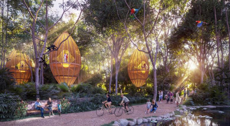 IXUA se encuentra actualmente en la etapa conceptual. La idea es que, el visitante, llegando a Palenque, se encuentre de pronto en la primera comunidad construida completamente en bambú. Con sus mágicos mercados, restaurantes y hoteles, Ixua envuelve a viajeros y habitantes en los colores y sabores ancestrales de la región.