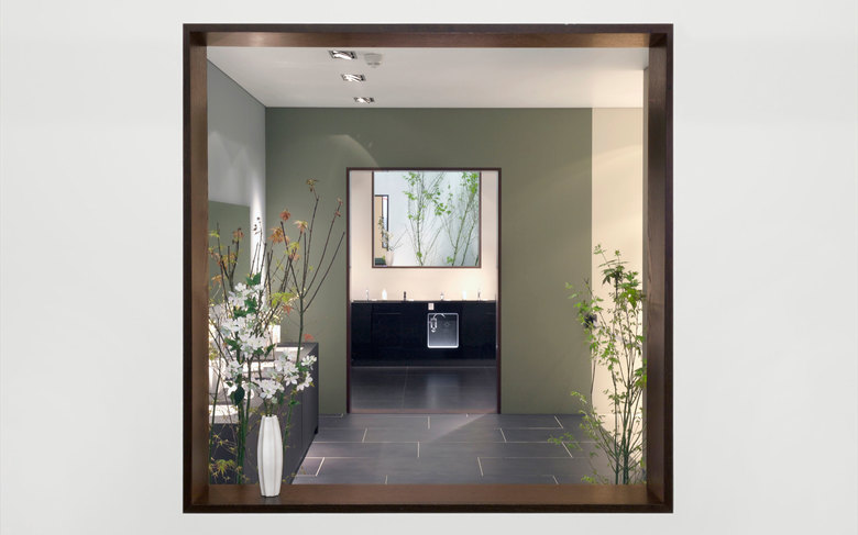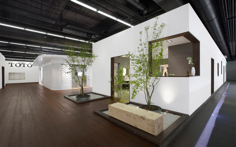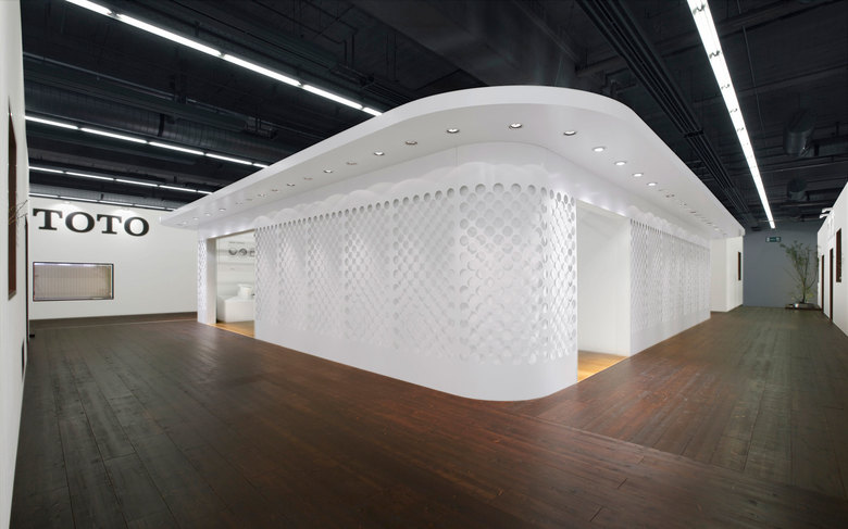 Die Fassade des zentralen Pavillons stellt das traditionell japanische Muster für Wassertropfen dar. Hier zeigt TOTO die neusten Produkte und ihre eigene Art und Weise mit Wasser zu arbeiten.