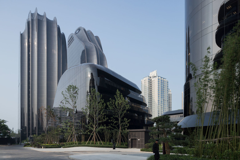 MAD Architects, led by Ma Yansong, has completed “Chaoyang Park Plaza”, which includes the Armani apartment complex. Positioned on the southern edge of Beijing’s Chaoyang Park ─ the largest remaining park in Beijing’s central business district area ─ the 220,000 sqm complex includes 10 buildings which unfold as a classic Shanshui painting on an urban scale. Having a similar position and function as Central Park in Manhattan, but unlike the modern box-like buildings that only create a separation between the park and the city, “Chaoyang Park Plaza” instead is an expansion of nature. It is an extension of the park into the city, naturalizing the CBD’s strong artificial skyline, borrowing scenery from a distant landscape ─ a classical approach to Chinese garden architecture, where nature and architecture blend into one another.