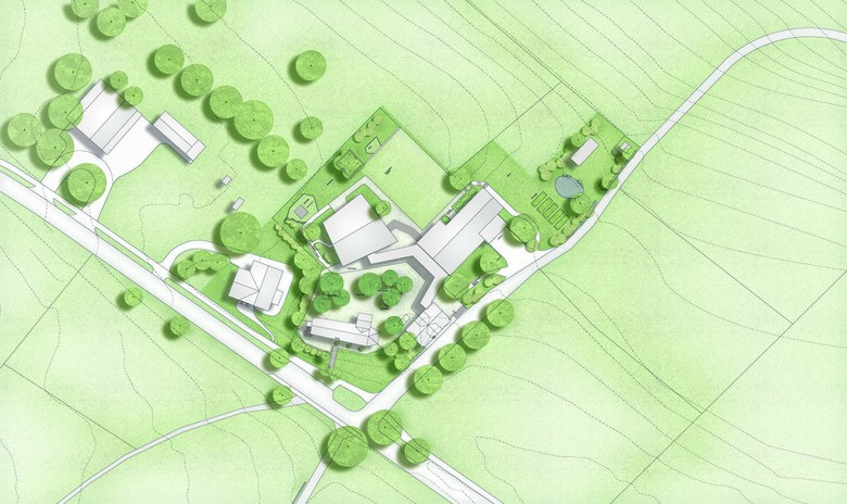 Die Erweiterung der Tagesschule setzt einen freistehenden Baukörper zum historischen Ensemble aus Kirche, Bentzelheim und Altem Schulhaus. Der Neubau grenzt den Hof ab und die Freitreppe überwindet den Geländesprung zu dem tieferliegenden Sportplatz und Garten auf natürliche Weise. Das Projekt überzeugt durch «eine sehr intelligente, präzise und spannungsvolle Setzung der Anlage.»