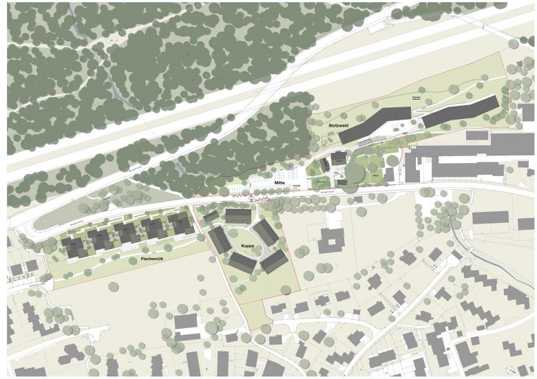 Die „Kuppe“ ist im Herbst 2021 fertiggestellt und bezogen worden. Fünf Wohnhäuser mit je 6 Wohnungen gruppieren sich um eine sanfte Kuppe im Hangverlauf, komplettiert mit einem grosszügigen Velohaus am Rande der Überbauung. Die Haupterschliessung der einzelnen Häuser erfolgt über einen Rundweg auf der Kuppe, der eine grosse Wiesenfläche umfliesst. Die weite Wiese bildet die Mitte der Überbauung und bietet vielfältige Möglichkeiten für Spiel und Begegnungen.