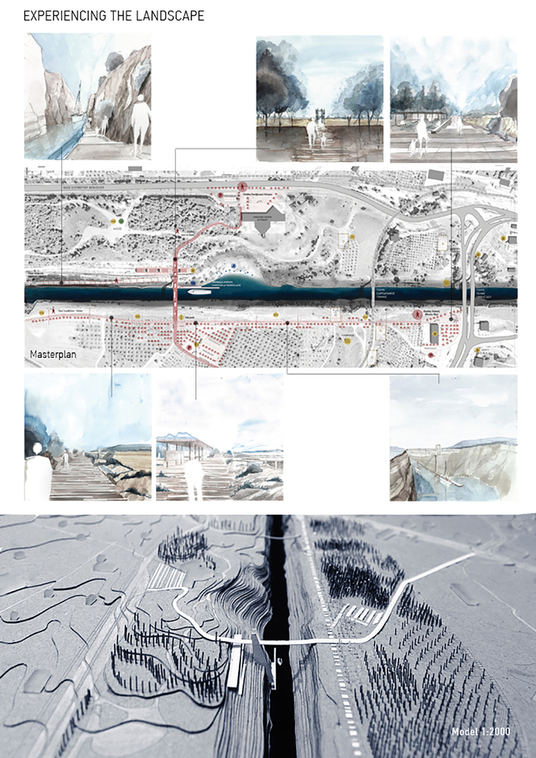 The project is about the Corinth Canal, a great human achievement of the 19th century, which has significant cultural and geological value, but today it's falling into oblivion. Through a "3 axes" analysis of the landscape, we aim to create a social, scientific and cultural pole where the visitors face the Canal's real dimensions and history.