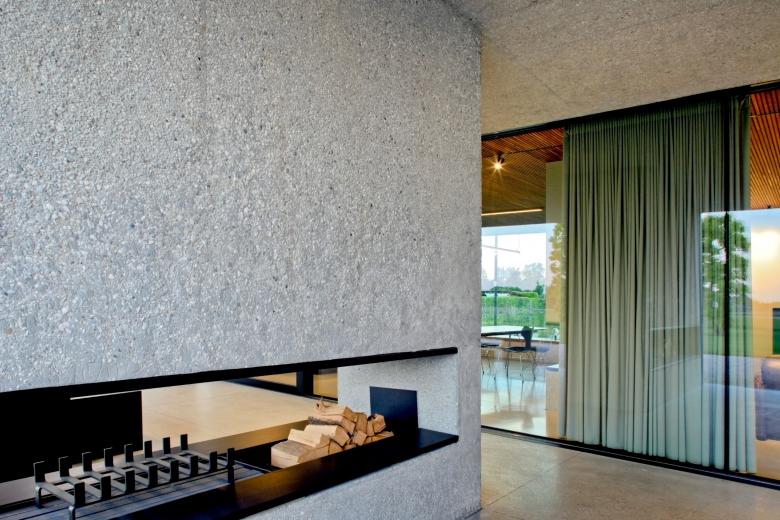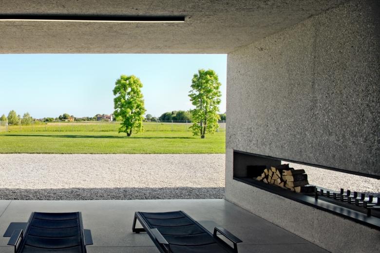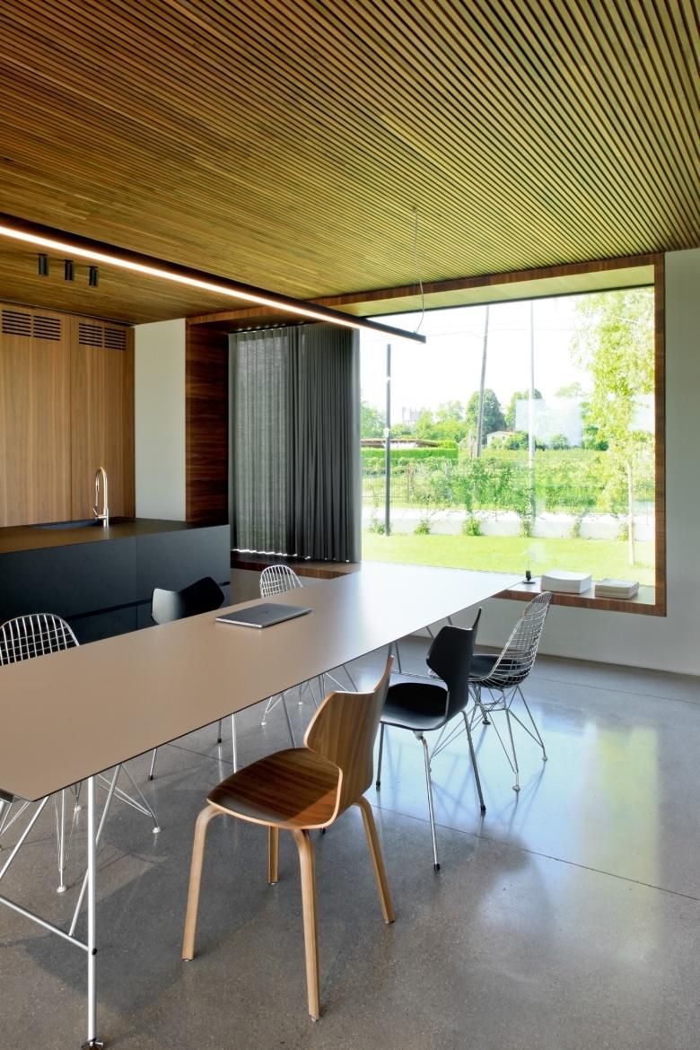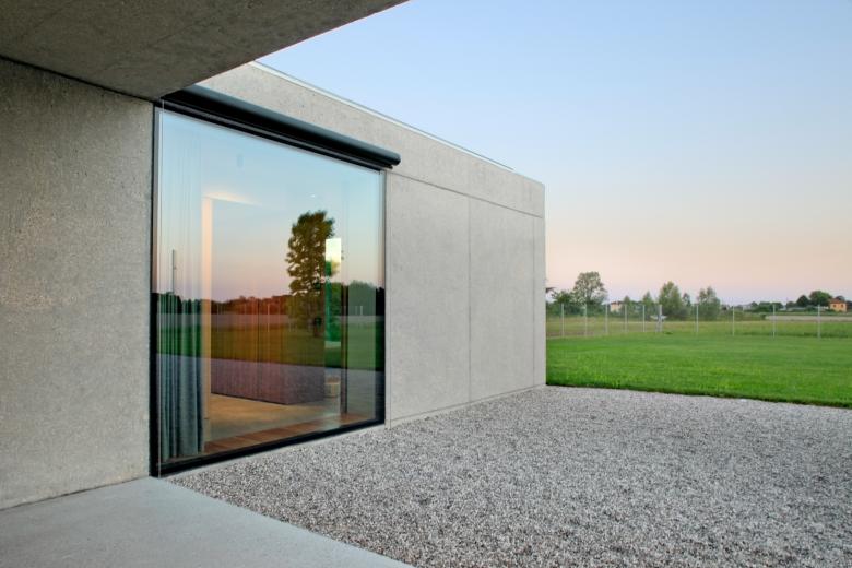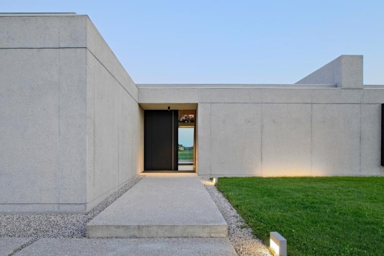 La posizione dell’edificio sfrutta tutto il potenziale del lotto: l’abitazione crea privacy e protezione per gli ambienti più intimi e si apre verso l’ampio giardino privato.