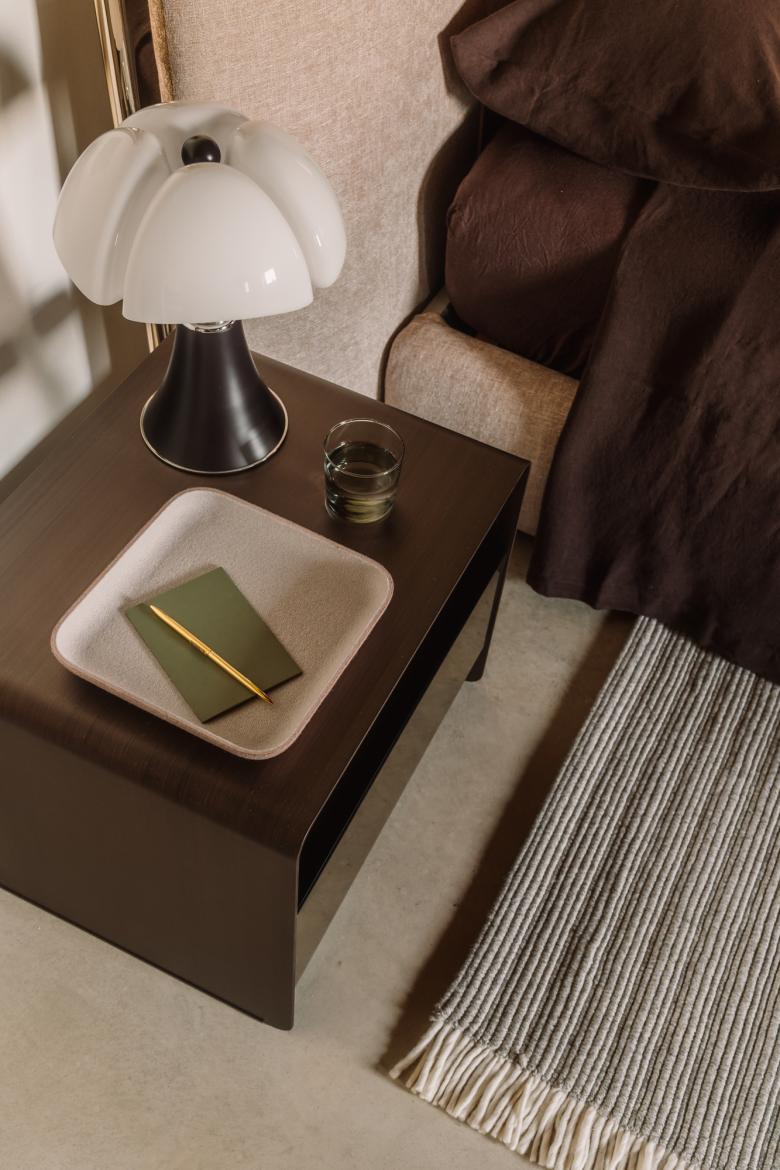 Iconici pezzi di design, come la Lounge Chair & Ottoman di Vitra, la poltrona Serie Up di Gaetano Pesce per B&B Italia e le lampade Pipistrello di Gae Aulenti, dialogano con le opere di Lorenzo Puglisi, aggiungendo profondità emotiva e un carattere distintivo agli interni.
