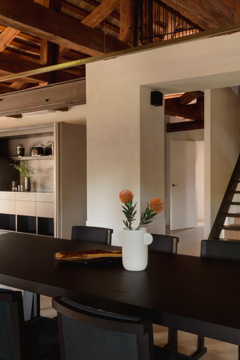 All’interno di una villa cinquecentesca affacciata sulla Riviera del Brenta, a pochi passi da Villa Pisani, prende forma un progetto che intreccia patrimonio storico e abitare contemporaneo. Il recupero dell’antico sottotetto, oggi trasformato in un attico luminoso e raffinato, nasce dal desiderio di valorizzare l’identità dell’edificio senza alterarne la memoria architettonica.