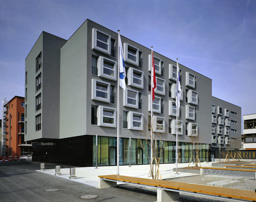 Das Projekt umfasst ein Betagtenzentrum mit 80 Betten an zentraler innerstädtischer Lage beim Bahnhof Zug, ein öffentliches Parkhaus sowie eine neue Platzgestaltung. Vier Bettengeschosse schweben über einem gläser- nen Sockel. Ein Wechselspiel von Kastenfenstern überspielt die innere symmetrische Aufreihung der Zimmer und erzeugt ein flächiges Fassadenbild.