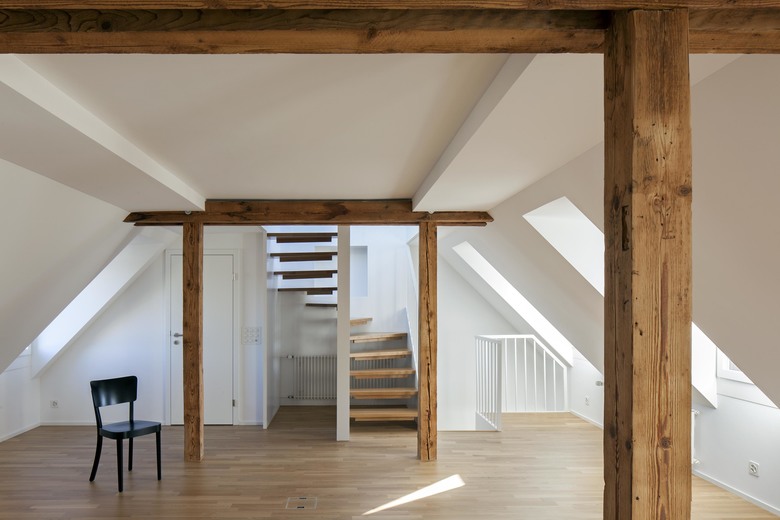 5. Das Dachgeschoss wird zusätzlichen Nutzwert durch die Anhebung der Dachaufbauten erhalten. 6. Erstellung zwei Zugänge auf Dachterrasse