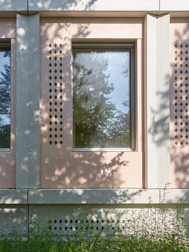 Die Grundrisstypologie der neuen Musterstationen geht auf die Bedürfnisse der Patient*innen ein. Eine transparente und zentral gelegene Eingangssituation soll eine positive Atmosphäre schaffen und Offenheit symbolisieren. Die lichtdurchfluteten und überbreiten Gänge führen zu den Zimmern und Wohnräumen. Die Zimmer sind auf den Park hinaus nach Osten oder Westen orientiert, ohne direkten Bezug zur Bahnlinie. Die neuen Zimmer sind Rückzugsorte der Patient*innen, die durch ihren modernen Charakter und die angenehme Raumatmosphäre an ein schönes Hotelzimmer erinnern. Der Neubau, eine Neuinterpretation einer einbündigen Gebäudetypologie, wird das Areal positiv verändern und ordnet sich in die neue Umgebung mit seiner U-Volumetrie ein und ergänzt die bestehende Situation. Das Gebäude soll mit seinem offenen und geschlossenen Charakter die Situation auf dem Areal verbessern und durch seine vertrauten Elemente eine positive Stimmung vermitteln.