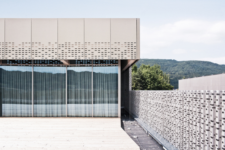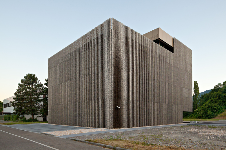 Das mehrgeschossige Gebäude ist als Zweckbau geplant und liegt mitten in einer Industriezone. Das Konzept eines Cubes und eines darüber liegenden Pavillons führt zu einer abstrakten Industriearchitektur, in welcher beide Raumqualitäten zu finden sind.