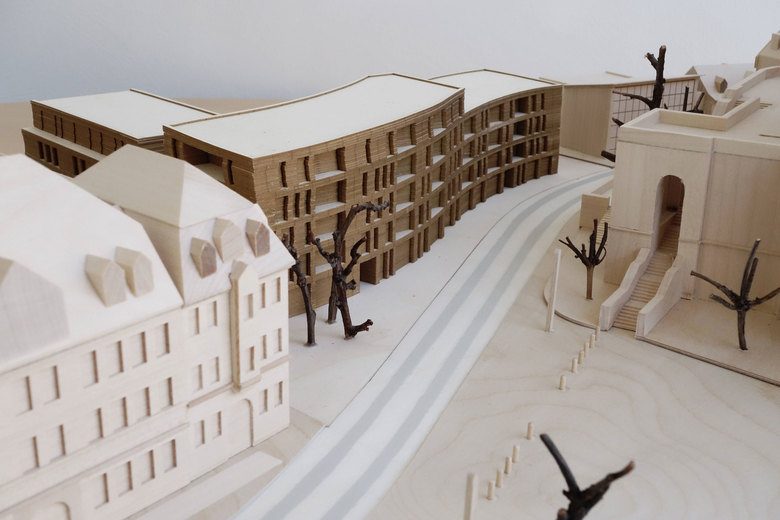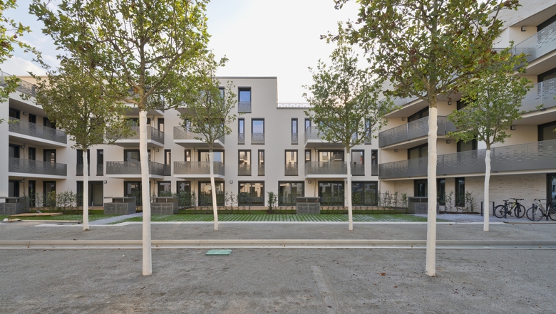 Der unaufgeregte Ansatz, die neue Bebauung quasi entlang der Grundstücksgrenzen anzulegen, eröffnet mit der Verschränkung des Südflügels und dem Lösen des sogenannten “Annexhauses“ zunächst eine grüne, luftige Mitte und zudem den erforderlichen wie bereichernden Freiraum zum Bergstrom - vor allem aber wird mit dieser klassischen Quartiersform eine erste und grundsätzliche Gliederung für Wohntypologien angelegt: die Basis für ein differenziertes Angebot zum Einquartieren.
