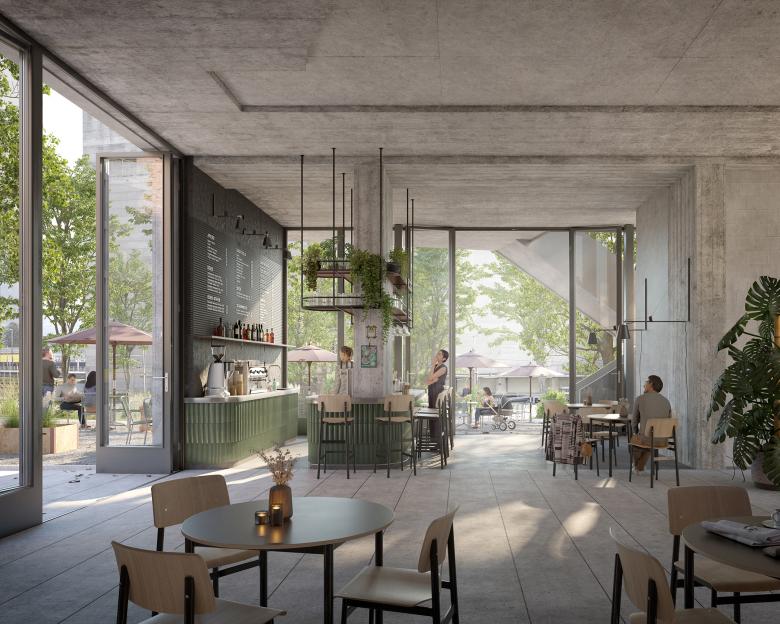 Geplant ist ein nutzungsneutraler Grundausbau für Gewerbe- und Dienstleistungsflächen, der im Erdgeschoss und im sechsten Obergeschoss – inklusive Galerie - mit zusätzlichen Grundinstallationen ausgestattet wird, um einen späteren Ausbau zur Gastronomienutzung zu ermöglichen.