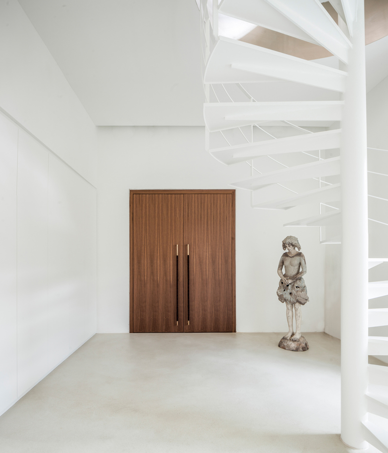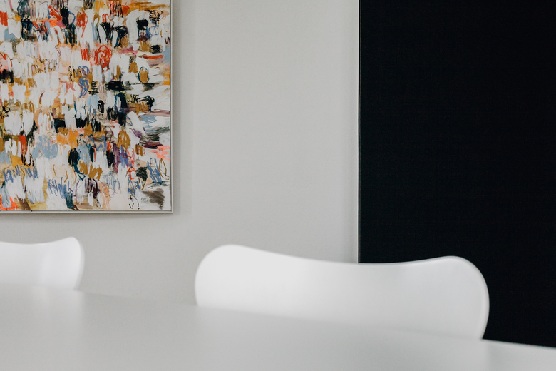 Die außergewöhnliche Atmosphäre des gesamten Büros wird zusätzlich noch durch eine interessante Sammlung an verschiedenen Kunstobjekten wie Malereien und Skulpturen bekannter Künstler verstärkt. In Kooperation mit der Galerie Cyprian Brenner wurden zahlreiche Exponate sorgfältig ausgewählt und an jeweils passender Stelle im gesamten Büro platziert. So wird der Besucher schon beim Eintreten durch eine Skulptur in Form einer jungen Dame aus Terrakotta, in Lebensgröße „empfangen“.