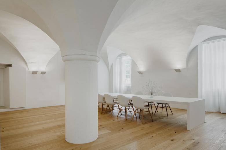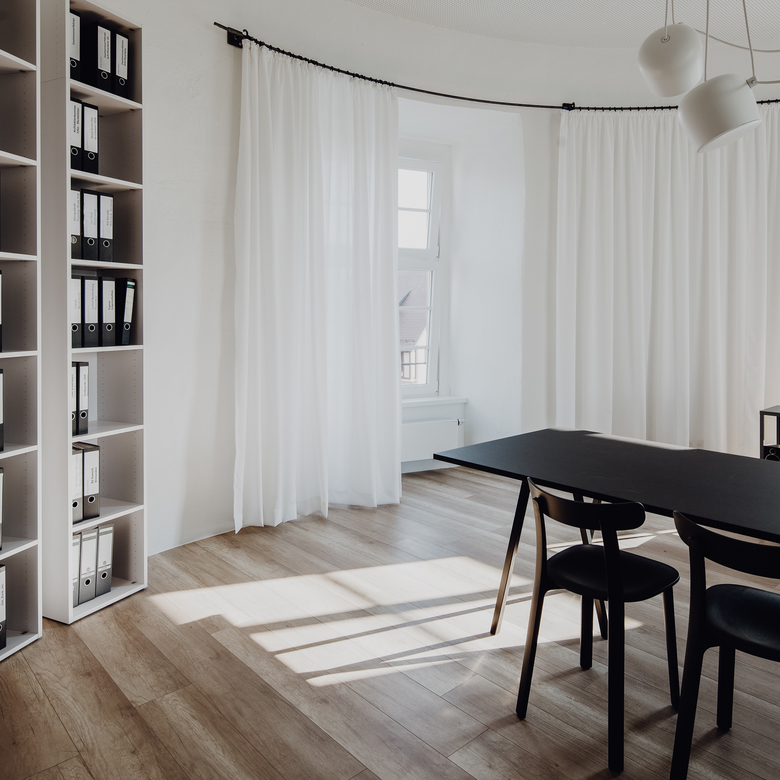 Das gesamte Innenraumkonzept wurde mit Gespür für die historische Bausubstanz saniert, neu geplant, ausgebaut und mit ausgewählter Inneneinrichtung ausgestattet. Unser Ziel war: Eine angenehme und repräsentative Arbeitsatmosphäre, wo Gegenwart und Vergangenheit harmonieren und nicht konkurrieren.