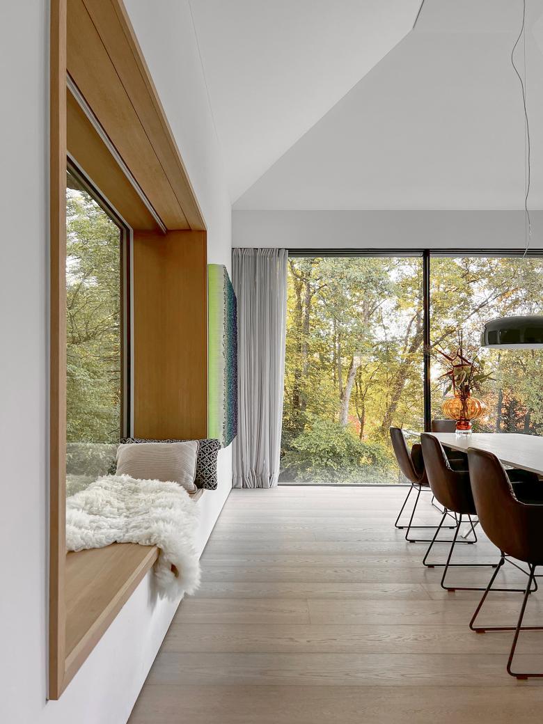 Villa Wolfrat is located in a quiet corner of Munich and blends harmoniously into its natural surroundings. Surrounded by the green, with old trees, the villa opens up to nature. A natural pond reflects the property and invites you to relax. The villa itself offers large window fronts, which ensure that light can flow into every corner and offer breathtaking views of the green oasis. The heart of the house is a spacious living area with an inviting sitting window that opens up to nature. Here, the boundaries between inside and outside merge and you feel as if you are sitting in the middle of the garden. The villa has a well thought-out “His and Hers” layout that offers both residents personal retreats without disturbing the harmony of the overall concept. In this villa, nature and modern luxury are in perfect harmony.