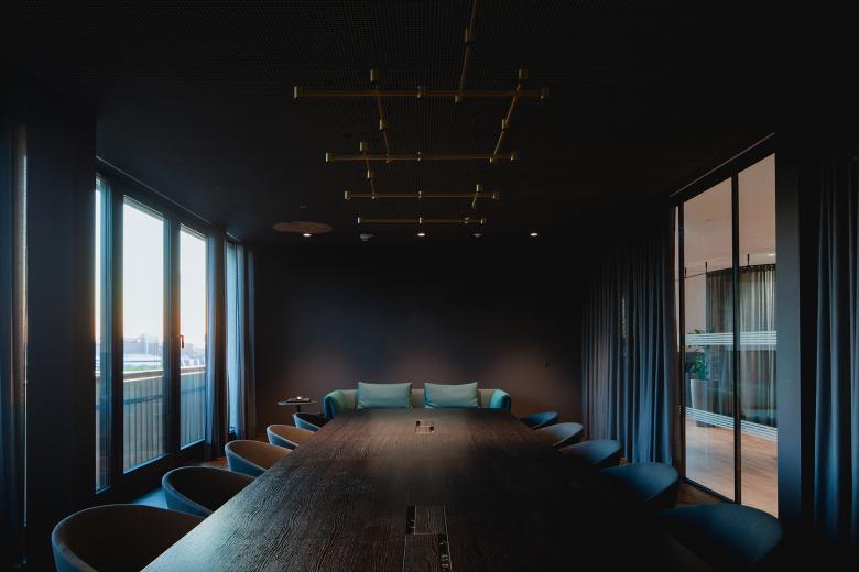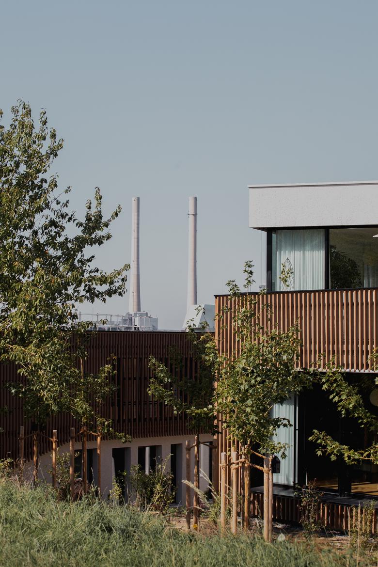 This also characterises the atmosphere on the roof terrace on the second floor of the main wing, which adjoins the large cafeteria. The place created for the employees as a retreat is completed by a large kitchen. Not only is cooking and barbecuing done together here, but team events also take place after work - when the sun slowly sets behind the two power plant towers on the horizon and the birdsong in the vineyards falls silent.