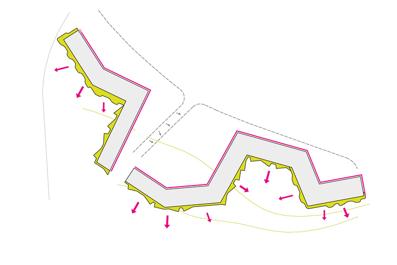 Unser Projekt ging 2012 als 2.platziertes Projekt eines geladenen Wettbewerbes hervor, ex aequo mit Martin Oberascher & Partner Architekten ZT GmbH. [MOA]. Nach vielen gemeinsamen Planungsworkshops und Denkphasen, Terminen und Besprechungen konnten wir schlussendlich 2016 in die Realisierungsphase gehen. Das Baufeld 01 wurde im Frühling 2018 fertiggestellt. Das ursprüngliche Konzept des Wettbewerbs blieb von der Geste her erhalten, obwohl das gebaute Ergebnis – wie immer im Planungs- und Bauprozess - von zahlreichen Einflüssen abhängig ist.
