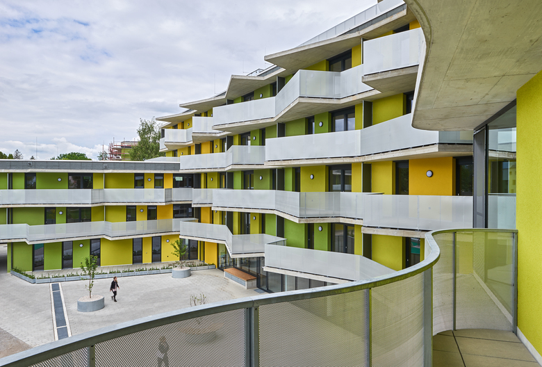 Das neue Wohnquartier Ignaz-Harrer-Straße - Gailenbachweg - Lehenerstraße entwickelte sich im Spannungsfeld zwischen dem städtischen Raum mit der hoch frequentierten Ignaz-Harrer-Straße im Norden und der offenen Parklandschaft im Süden. Die Bebauung wurde in durchgehend geschlossener Anordnung konzipiert und reagiert auf die Erfordernisse infolge der bestehenden Schallemissionen entlang der Ignaz-Harrer-Straße sowie auf die vorgefundenen Besitzverhältnisse (i.Bes. auf die nicht absehbare Verfügbarkeit der Baufläche 4). Stadträumlich kontrastiert die Ausbildung einer geschlossenen, urbanen Kante entlang der Ignaz-Harrer-Straße der beruhigten, erholungsräumlich geprägten Parklandschaft im Süden des Bebauungsgebietes und schafft eine räumliche Differenzierung in eine urbane ‘Bewegungsseite’ im Norden und in eine ‘Wohn-, Park- und Gartenseite’ im Süden. Durch die mäandrierende Anordnung der Bebauung werden ‚Bewegungsseite’ und ‚Gartenseite’ verwoben und in Beziehung zueinander gesetzt. Gezielt verortete Durchgänge gewährleisten die Durchlässigkeit des Quartiers. Entlang der Ignaz-Harrer-Straße wird eine Sequenz von unterschiedlich großen Plätzen geschaffen, die vielfältige Bespielungen ermöglicht und ein urbanes Vorfeld für das Wohnquartier schafft. Architektonisch kontrastiert die Ausbildung der geschlossenen Laubengangfassade entlang der Ignaz Harrer-Straße den durch eckige und runde Balkone geprägten Charakter der zum Park gerichteten Wohnfassaden.