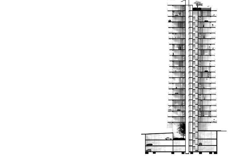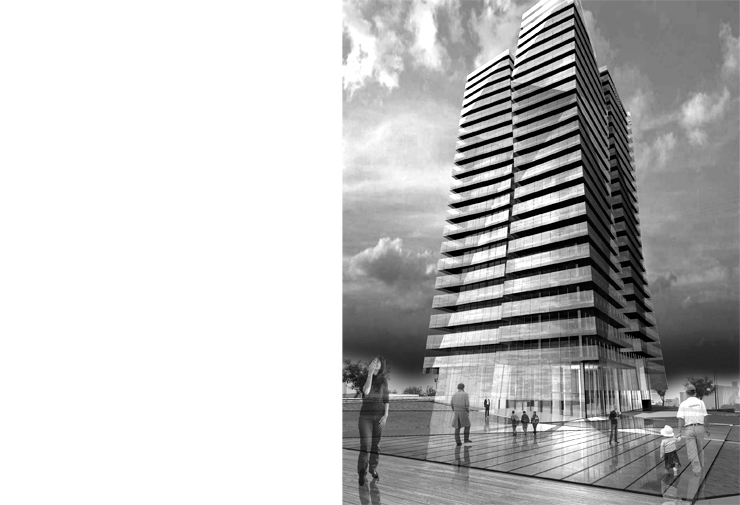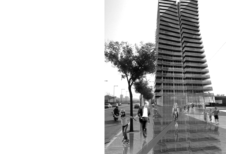 The competition expects 27290,31m2 of roofing above gradient in a municipal plot, the facade faces Segre river and the future "Palau de Congressos de la Llotja"'s building. The draft is adapted to two tower versions, one of ground floor + 15 (A) and another of ground floor + 21 (B), anticipated as an regulation alternative to the modification of Lleida's "General Plan"