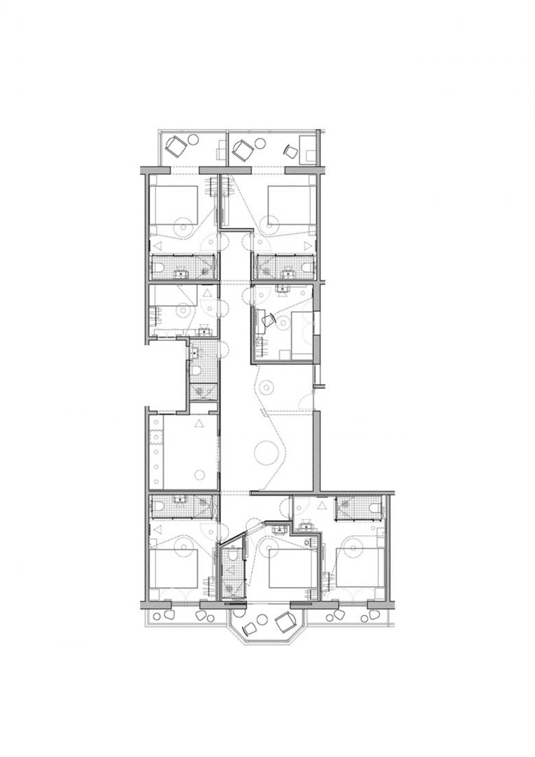 The project consists in renovating an old guesthouse located in a classic 19thcentury residential building, completely transforming the atmosphere while staying within the normative limitation of not modifying the existing distribution. The change in the type of accommodation to be offered is significant, and therefore the project proposes a new sober and elegant look that interacts with the elements of the building’s original architecture while seeking unexpected visual resources that add a differential value to the clients’ accommodation offer.