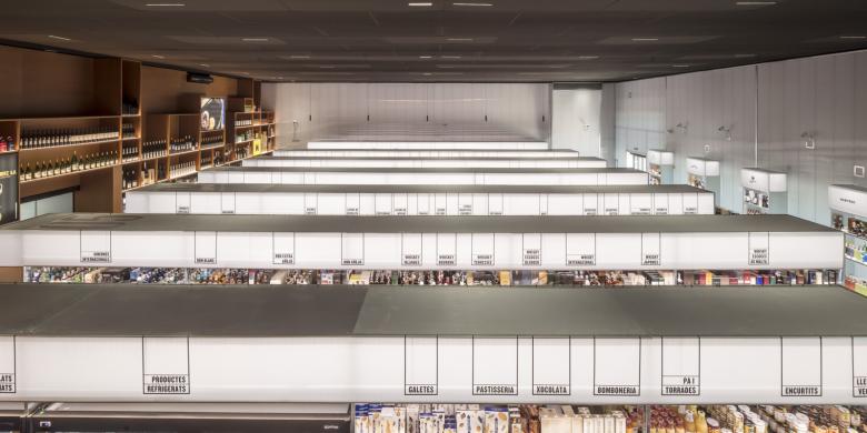 With the capacity to store and exhibit more than 10,000 referents of the best wines, distillates, and gourmet products, the Jane liquor store is one of the landmarks for good drinking enthusiasts. This great diversity of products almost with a collection character is precisely what was sought to materialize in the great main facade. This was also designed to generate a great visual impact that managed to capture the attention of the neighboring highway, inviting visitors to discover and experience the treasures that are held inside. The same visual impact has a lasting effect that is expressed at night through a programmable LED lighting system integrated with a chromatic game that makes Jané Winestore the beacon of the nights in Comarruga.