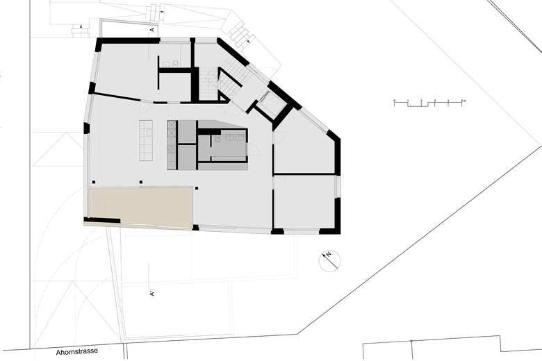 Auf einer Parzelle mit einem bestehenden Einfamilienhaus aus den 50er-Jahren, sollen, für eine private Bauherrschaft, mit einem Ersatzneubau die vorhandenen Nutzungsreserven ausgeschöpft werden. Nebst den gesetzlichen Grenzabständen bestimmt die Waldabstandsbegrenzung im Norden das Baugrundstück stark. Erschlossen wird das Grundstück über eine schmale Schnittstelle im Süden.