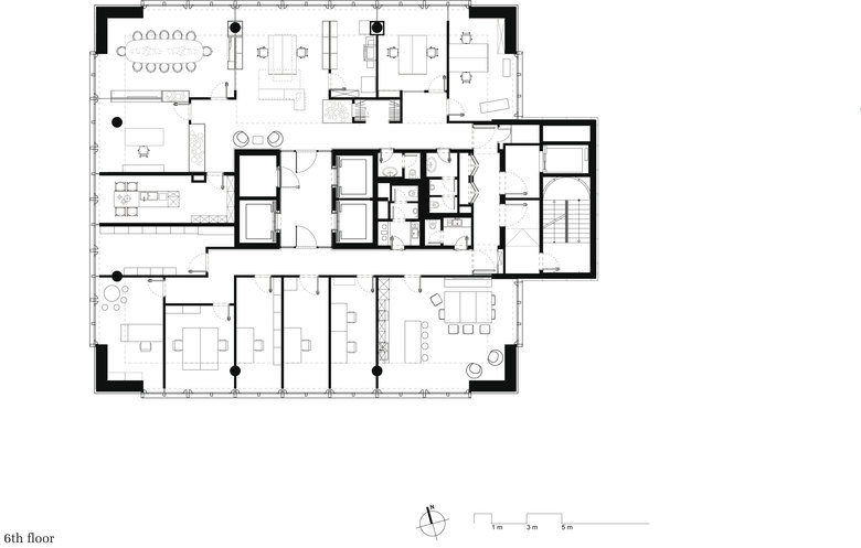 Es entsteht eine Raumstimmung als Dialog zwischen der Rationalität einer klaren, präzisen und transparenten Architektur sowie der Emotionalität von warmen Materialien und überraschenden, augenzwinkernden Elementen wie den Vitrinen und den Bildern. Das Büro wird zur offenen Erzählung, einer Einladung zum Gespräch über Inhalte, Sehnsüchte und Arbeitsweisen des Projektentwicklers. Es wird somit zum Spiegel der Persönlichkeit der Firma und ihrer Akteure und kann von jedem der vier Geschäftsführer unterschiedlich und immer wieder neu interpretiert und erzählt werden.