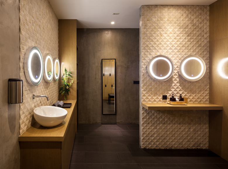 Experiencing the clinic from the patient’s perspective became core to the design philosophy of the project. Given the grey and bustle of Shanghai, the immediate choice was to bring the entire material selection back to natural soft elements to create a sense of intimacy, pause and relaxation. We wanted the patient to feel first and foremost like they were the center, arriving into a boutique lobby as a premium-returning guest and beyond that the feeling of uniqueness. Everything about the design was purposefully selected to make the space practical for treatment but ultimately ensure a patient-centric journey. Many of the elements in the reception area such as the soft leather couches, bookshelf, carpet, timber flooring, floor lamp and plants are staged to give the feeling you are entering your own private living room. The clockwise flow of the patients' journey from check-in to the treatment room to the exercise floor, enhances the feeling of serenity and calm.