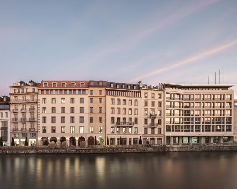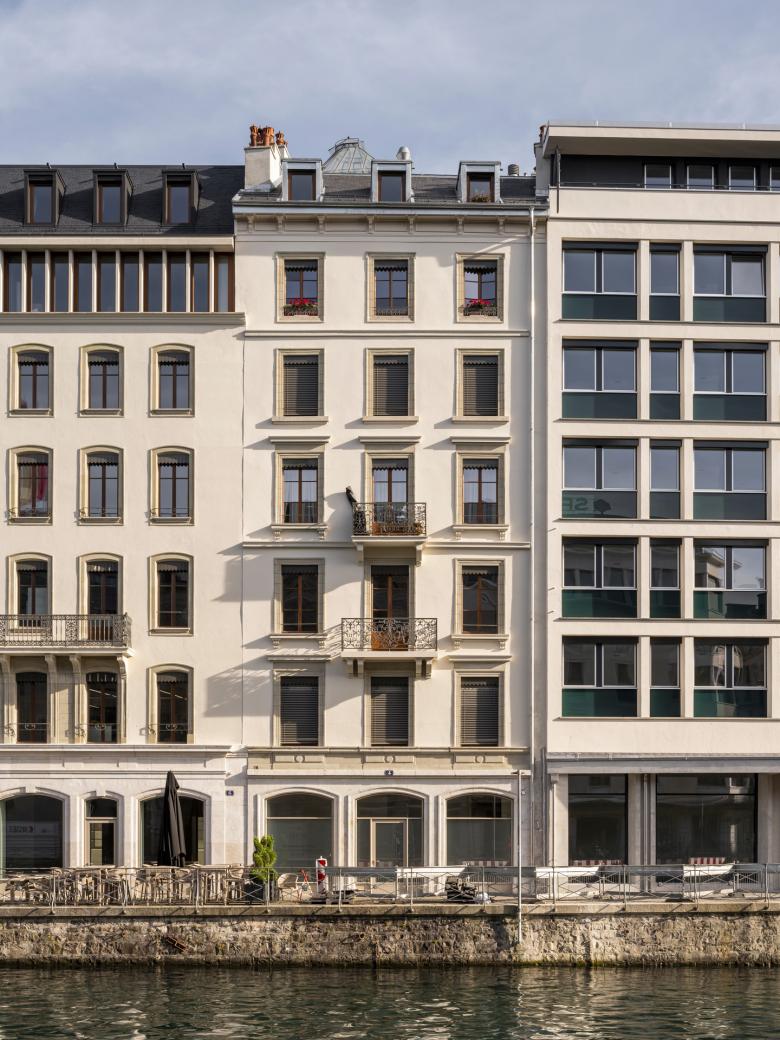 Inscrit dans le contexte du Plan de site de la rade, le projet en suit les lignes directrices et conserve la lecture historique du parcellaire. Il ne cherche pas à lisser les constructions et les périodes, mais assume la variété de constructions et de styles comme une qualité de la rade. Par ailleurs, l’ordre et la hiérarchie entre les niveaux sont également respectés, par l’intermédiaire d’une structuration verticale claire : rez-de-chaussée, corps principal et attique ou toiture.