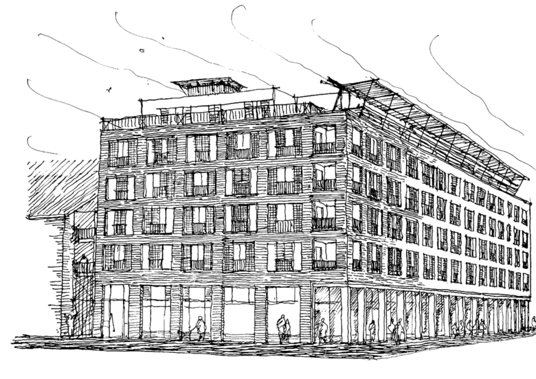 Der Sudermanplatz ist einer der typischen Sternplätze der Kölner Neustadt und einer der letzten großen innerstädtischen Plätze der Stübbenschen Neustadt, der nach der Kriegszerstörung als "Provisorium" liegengeblieben ist. Das Studentenwohnheim schließt diese Lücke und macht über eine Integration der Kompaktstation der GEW den Weg für eine großzügige Neugestaltung dieses wichtigen Platzes frei. Das Bauvorhaben mußte in dem sehr engen Kostenrahmen des sozialen Wohnungsbaus realisiert werden.